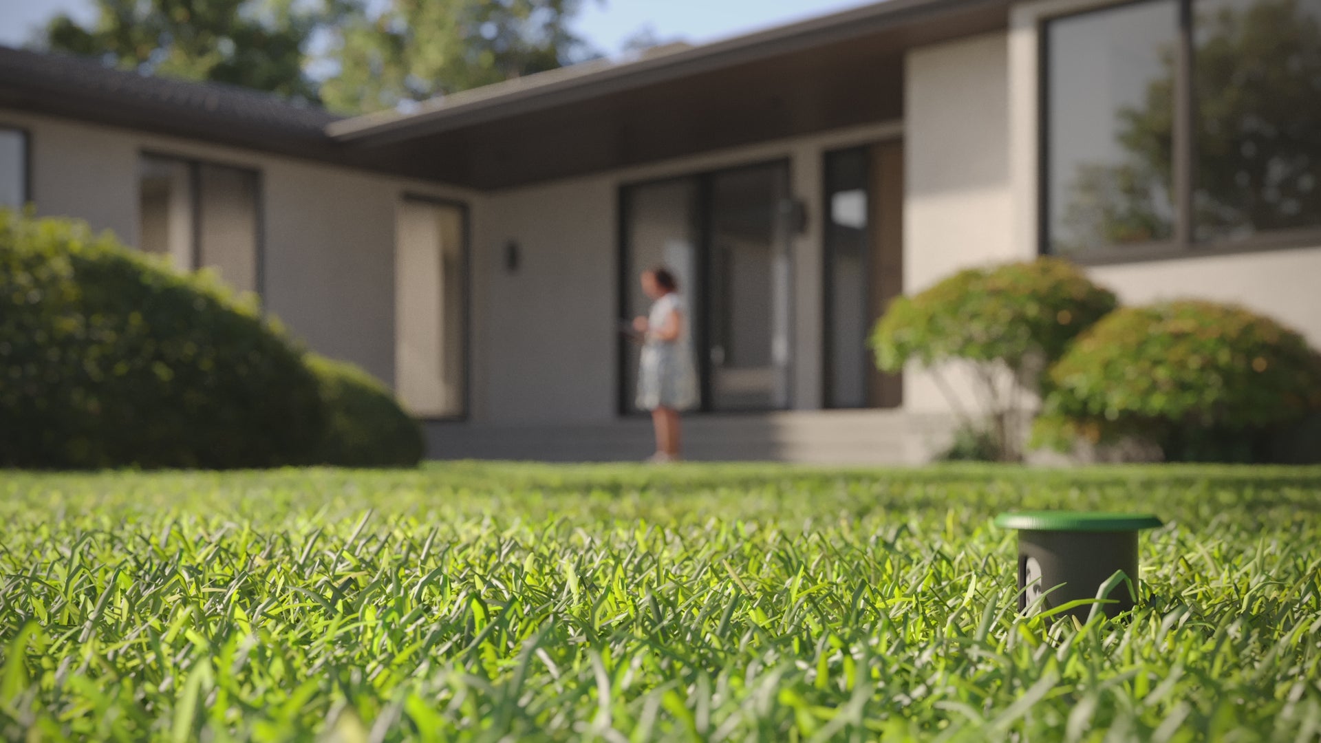 Traditional systems require dozens of heads and zones to cover a property, often leading to inefficiencies and water waste. Irrigreen typically needs 80% fewer heads by covering larger, irregular areas with a single head. It uses a high-resolution digital valve and nozzle system, allowing each head to spray only where water is needed.